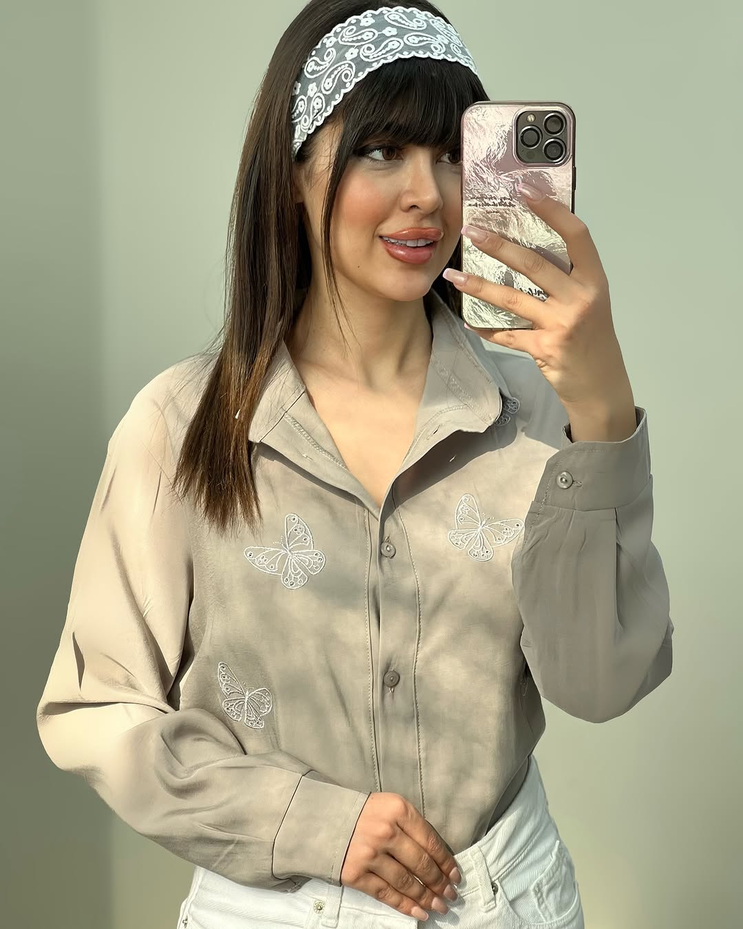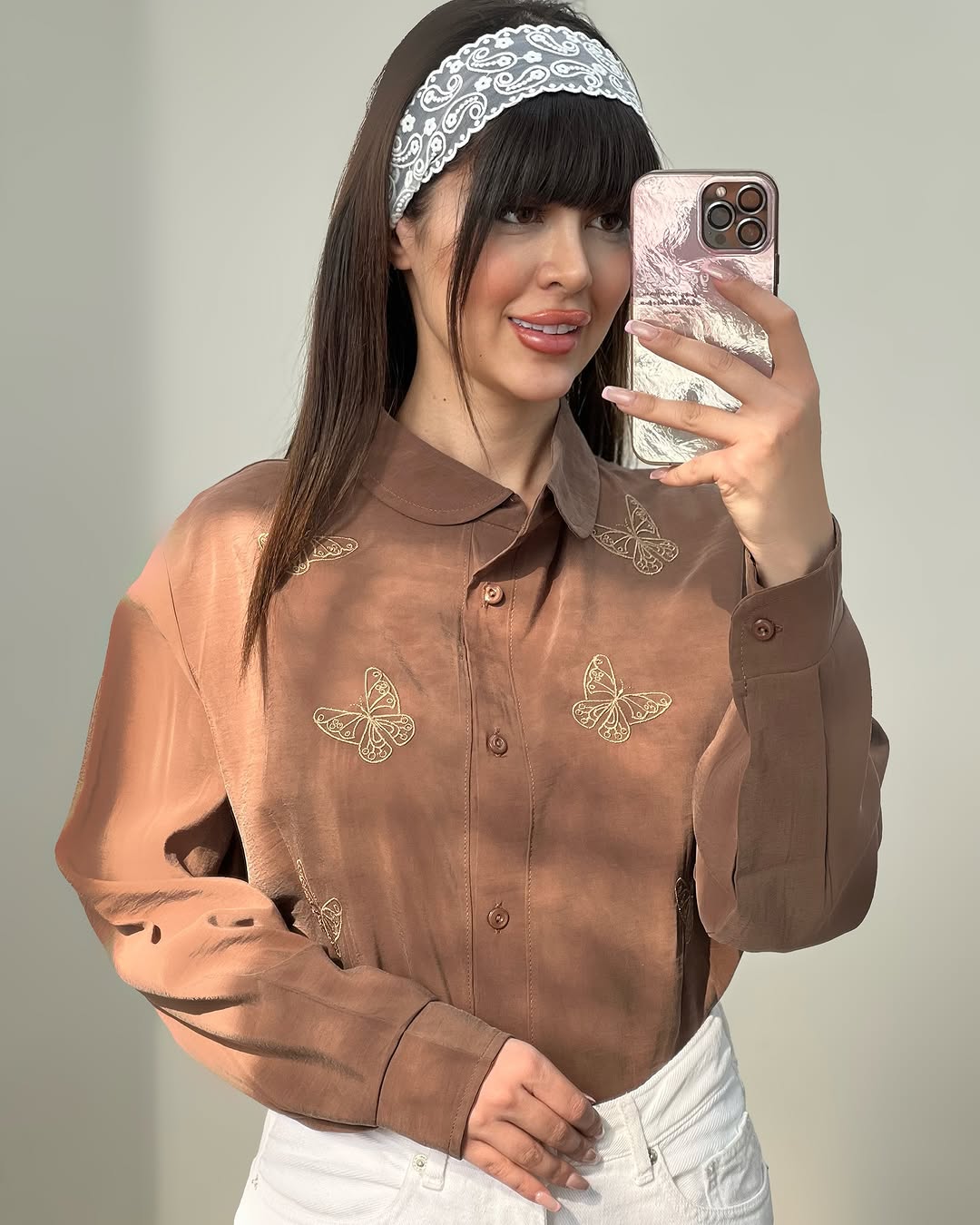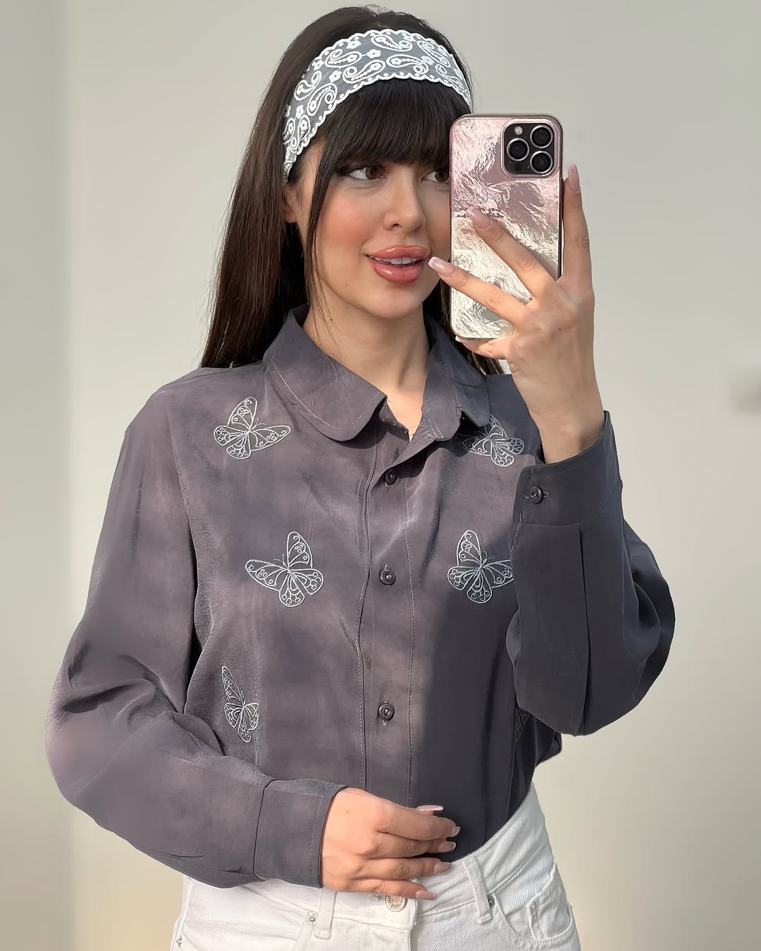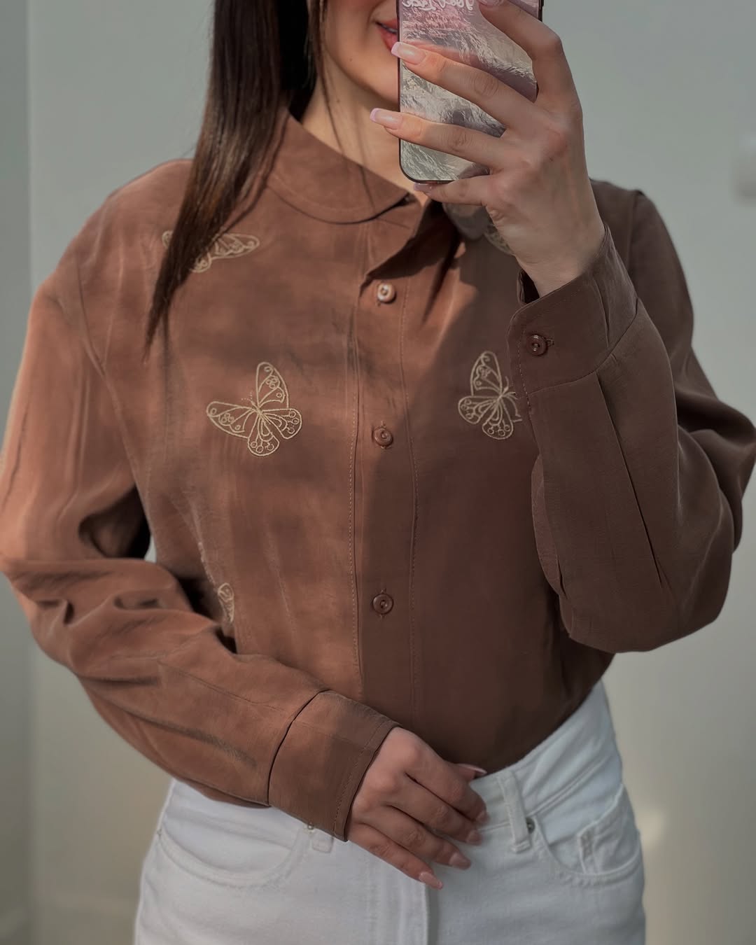 شومیز با طرح پروانه و کیفیت عالی، مناسب برای خرید آنلاین. دارای امکان تعویض سایز.